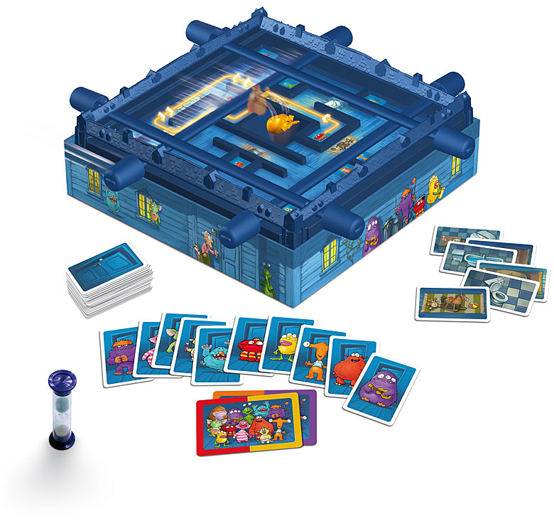 Pour pimenter le jeu, une variante augmente la difficulté en imposant des pièces à visiter à travers le manoir avant de pousser les monstres dans le trou, ce qui demande encore plus de coordination et d’observation...