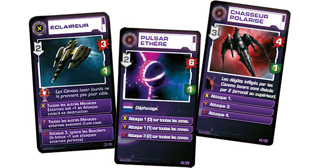 Besoin d’ennemis plus dangereux ? Ces nouvelles cartes Menace vous vous combler : elles changent de réalité, se cachent derrière des mégaboucliers et font frire votre équipage à grand coup de fusil plasma.