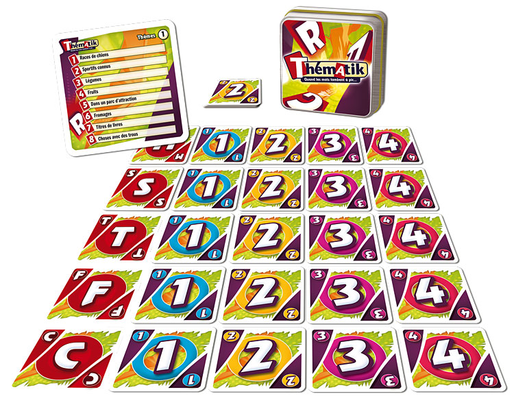 Le jeu s'explique en 2 minutes et se joue en 20 ! Thématik est un jeu de lettres familial où tout va très vite. Les chanceux qui étaient au FIJ de Cannes ont eu l'occasion de l'essayer sur le stand Cocktail Games...