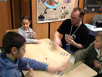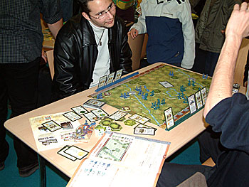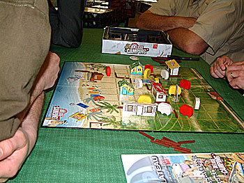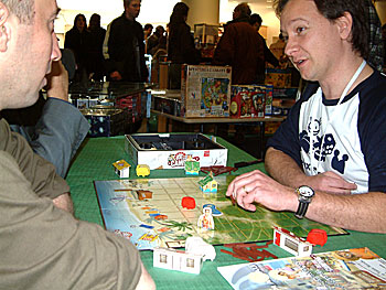 De retour sur le stand de Deluxe Camping, ou L'auteur est en pleine explication des règles.