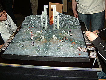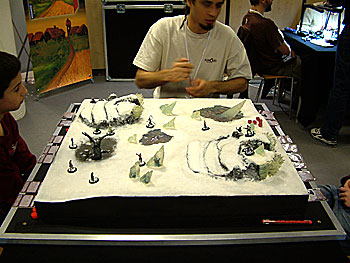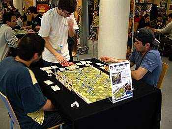 Mais le jeu qui est mis vraiment en avant cette année, c'est bien sûr Battlelore. Ici l'animateur termine son explication, la partie va débuter...