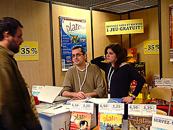 Juste à coté du stand Plato, où Monsieur et Madame Plato discutent avec Philippe des Pallières.