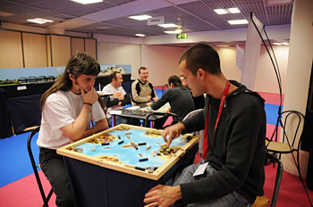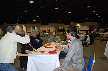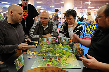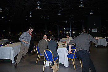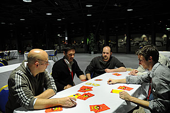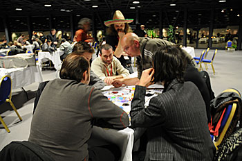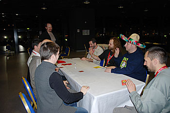 ...On a mis un tel binz qu'on a fini par attirer à notre table les spécialistes des jeux d'ambiance : les Belges à Sombrero de Repos Prod avec lesquels nous allons enchaîner une autre partie.