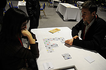 De retour sur le Festival le jeudi, nous avons foncé tout droit vers le stand Ystari pour essayer Bombay en compagnie de Cédric, Anne-C. et Croc. Nous profiterons des explications de Cyril.