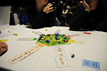 Sur le stand d'Alcès, on pouvait découvrir Sombrero ! de Cédric Martinez, un petit jeu d'ambiance absolument mortel. Alors c'est sur que si vous ne jurez que par les petits cubes en bois ce jeu n'est pas fait pour vous et c'est bien dommage parce que vous passerez à côté d'un jeu fun et idéal pour mettre l'ambiance. en tous cas nous avons fait de multiples parties tout au long du festival et chacune d'entre elles aura été synonyme de grand moment de détente et de rigolade...
