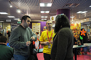 Seb Pauchon et Malcolm Braff en discussion sur le stand Ludocortex...