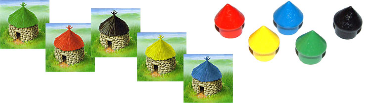 Avant de commencer, on va placer, sur chaque région, 5 huttes (une de chaque couleur), de façon à ce que toutes les huttes des 5 clans (12 de chaque couleur) soient en place dès le début du jeu et réparties et manière équilibrée sur chaque région.