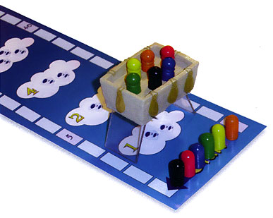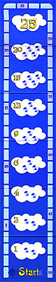 Pour commencer, on met en place le plateau de jeu sur la table. Sur celui-ci est représenté le chemin que devra essayer de parcourir le ballon, symbolisé par 9 nuages successifs, ainsi qu'une piste de score de 50 cases.