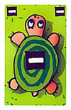 La tortue dont la couleur est désignée par la carte recule d'1 case.