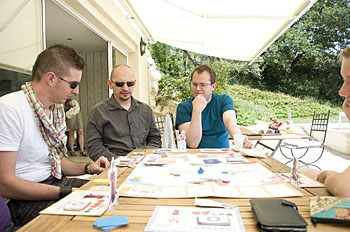 A cette table Bruno, Hicham et Jef testent un proto de Bruno...
