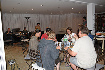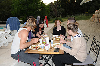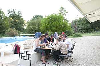 ...certains mangent au bord de la piscine...