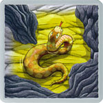Sur chacune de ces cartes est représenté un danger (serpent, scorpion, éboulement, etc...), danger que viennent de rencontrer les aventuriers pendant l'exploration de la grotte.