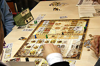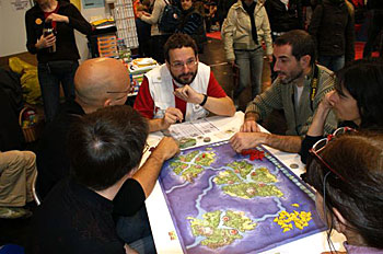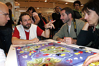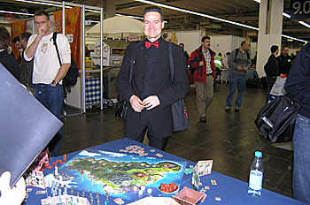 ...même l'indéridable Knizia s'est fendu d'un sourire, c'est dire si le jeu fait de l'effet ! (Joli noeud papillon rouge her Knizia )
