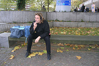 Chris qui fait une pause clope en se pensant à l'abri des objectifs