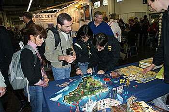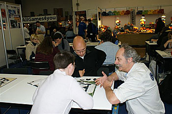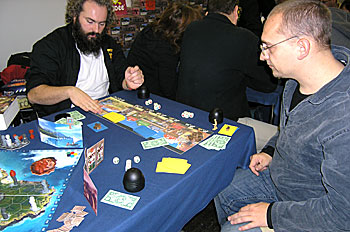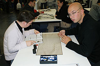 Sont pris par la patrouille : Serge et s douce (que l'infâme Jeff cache volontairement à droite sur la photo) en train de se la couler douce pendant que nous essayons désespérément de trouver une table pour jouer à Novembre rouge et Ad-Astra !
