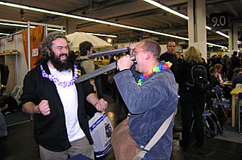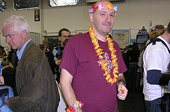 La c'est plus inquiétant, Cyril et Hicham semblent atteints du même symptôme et se baladent sur le salon affublés de colliers à fleurs : mais que fait le Samu ?