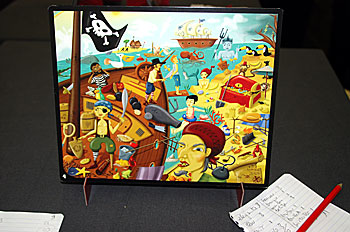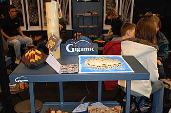 Ca c'est un plateau de Kaleidos et c'est le seul que vous verrez ! L'hôtesse, qui semblait un poil nerveuse, nous prenant pour d'infâmes copieurs de jeux, nous a sauté sur le paletot pour que nous arrêtions de photographier le jeu. Faut arrêter la camomille ma chère, ça ne vous réussi pas apparemment...