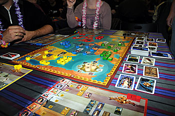 Pd Verlag présentait Machu Picchu qui aura pas mal capté l'attention des joueurs, des tables prises d'assaut et des parties de 2h environ ont eu raison de nos tentatives pour essayer le jeu. Néanmoins nous avons eu une explication des règles en anglais, qui ne nous a laissé une impression de jeu assez classique...à suivre...