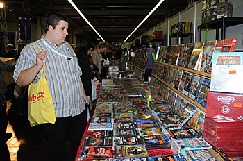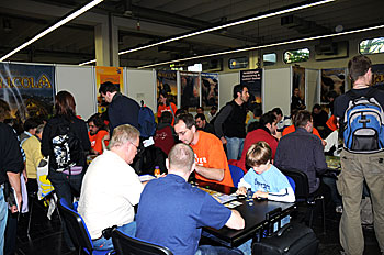 Dans les halls d'Essen on pouvait trouver autre chose que des jeux de société, ici par exemple (à gauche) des jeux vidéo ou encore (à droite) des affichettes et plaques diverses. Et ce n'est bien sur pas une liste exhaustive...