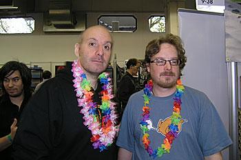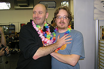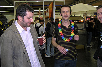 Mathieu supervise, d'un oeil bienveillant, les explications d'Hicham sur les géants (en gros il fait semblant de comprendre l'anglais, arf ! )