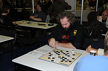 Matthieu, super concentré sur sa partie de Tzaar, il a beau jouer tout seul, l'issue de la partie reste incertaine !