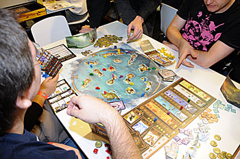 Chez Ystari, on pouvait jouer à Bombay, mais la grande nouveauté c'était bien Assyria, que nous n'avons pas eu l'occasion de retester...