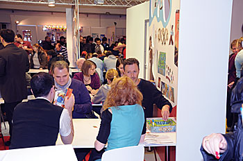 Jeudi matin, c'est l'entrée dans le grand bain. Les portes d'entrées donnent sur le hall 12 directement sur le stand d'Asmodée, où l'on retrouve une grande partie de la colonie française...