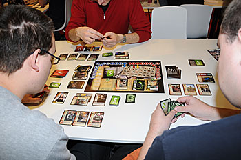 Du côté de Nexus, les tables disséminées sur leur stand permettaient de tester Wings of War, Age of Conan, ou encore Ad Astra...