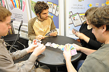 0 de Reiner Knizia, c'est chez Asyncron : un petit jeu de cartes malin ou l'on va essayer de constituer des combinaisons gagnantes en faisant des échanges avec les cartes qui sont sur la table, mais attention pour ne pas donner les cartes attendues par vos adversaires, il faudra les observer un minimum...