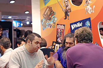 ...où Ludo vient de rejoindre Toinito et Bruno en pleine discussion de travail (bon ça c'est pour faire bien hein, parce qu'en fait, à part Bruno toujours très sérieux , ils ont plutôt l'air de déconner là).