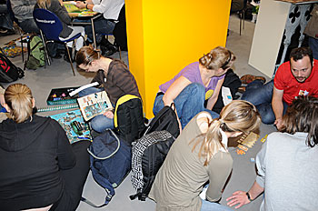Il y a trop de monde et pas de table pour jouer, aucun problème : on s'assoie par terre. Même les animateurs jouent le jeu et viennent expliquer les règles au sol, mortel !