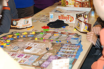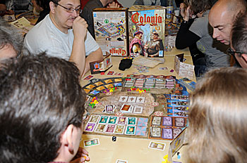 Colonia de Dirk Henn c'est la grosse nouveauté de Queen Games. La grosse boîte est pleine de matériel et graphiquement c'est plutôt sympa. Mécaniquement Colonia n'a rien de révolutionnaire mais le jeu fonctionne bien et se présente comme un bon jeu de gestion. A tester avant d'acheter.