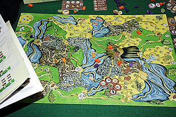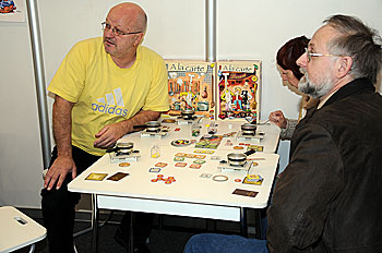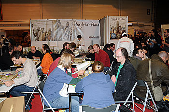 Rio de la Plata était présenté chez Giochix. Il s'agit d'un jeu à l'allemande de Miquele Quondam...l'auteur Italien, dont j'ai fait la traduction française. Pas mal de table à disposition pour s'essayer à la gestion de colons du XVIème siècle et participer à la fondation de Buenos Aires.