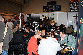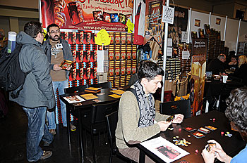 Au fond du hall 5, nous arrivons sur l'espace "Frenchie" occupé par 4 éditeurs français qui se sont regroupés sur un gros stand. Ainsi Pavillon noir, Krok Nik Douil, Ludonaute et Rallyman se trouvaient côte à côte et c'était bien sympa . Pavillon Noir présentait, en plus d'Openzedor, Ordalie, un jeu de bluff et d'intuition pour 2 joueurs.