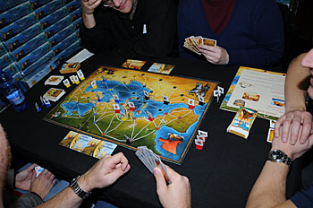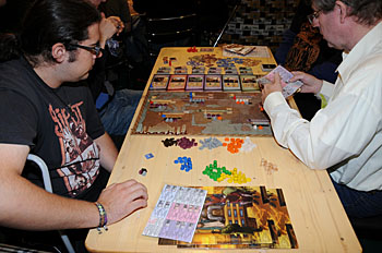 Uchronia de Carl Chudyk, un jeu de gestion de cartes et d'expansion qui fonctionne bien dans l'absolu, mais souffre d'un trop grand nombre de mécanismes dont les similitudes n'aident pas lors des premières parties...De plus d'après mes compagnons de jeu ça ressemble beaucoup à Glory to Rome (que je n'ai jamais pratiqué personnellement)...