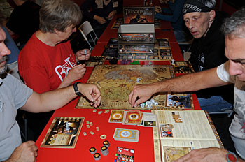 Si le jeu est bien, on déplore quand même les techniques de vente à la Queen Game : Le jeudi le jeu était proposé à 50€ et son extension à 25€, le vendredi un pack contenant le jeu est son extension était proposé à 50€ soit le prix du jeu le jeudi ! Et impossible pour celui qui avait acheté la boite de base le jeudi de bénéficier de l'offre. Toujours plus fort : le samedi ils sortent de leur manche deux minis extensions à 4€ (chacune) ainsi qu'une planche de stickers à coller sur les figs en bois à 4€ également (la planche était fournie avec le pack le samedi et bien sûr ceux qui ont acheté le pack le vendredi devaient, eux, payer les 4€)...Si ce n'est pas prendre les joueurs pour des vaches à lait ça...Bref carton rouge à Queen Games, qui n'avait, de plus, pas besoin de ça pour vendre ses jeux...