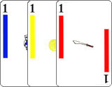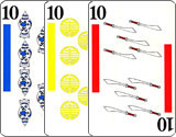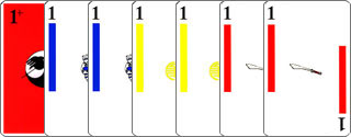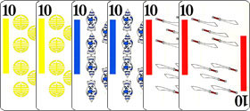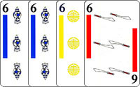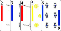 - Les couleurs des cartes déterminent leur hiérarchie, le rouge étant la couleur la plus forte, vient ensuite le jaune, puis le bleu.