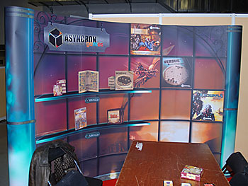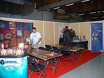 Personne pour l'instant sur le stand Asyncron, mais ça ne durera pas, juste le temps de boire le café...