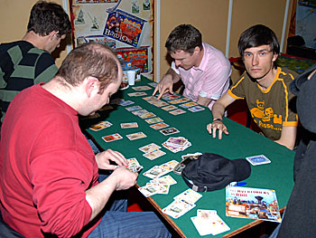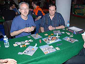 Chez Days of Wonders, l'actualité c'est la sortie des "Aventuriers du Rail" version carte. On y trouvait donc logiquement plusieurs tables dédiées.