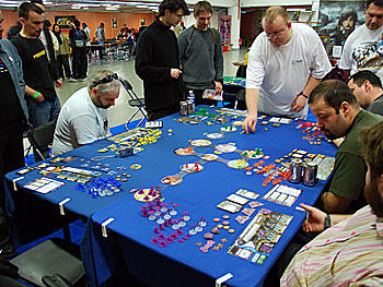 Une partie de Starcraft se met en place, impressionnant l'espace nécessaire au déploiement de tout le matériel...