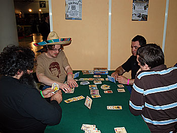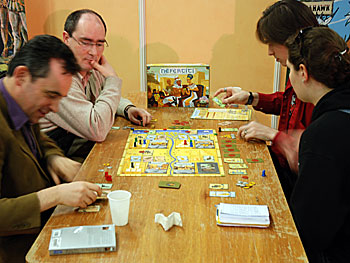 Pour notre première partie de Ghost Stories, nous bénéficions des explications d'Antoine Bauza. Le jeu est coopératif, les illustrations sont de Pierô et on retrouve tout ce qui fait le sel des jeux coopératifs : gestion des évènements, bonne utilisation des pouvoirs particuliers des personnages et une dose de hasard (en partie maîtrisable) pour faire planer un peu d'incertitude...Le thème reprend le fond d'histoires de fantômes chinois et nous transforme donc en chasseurs de fantômes.