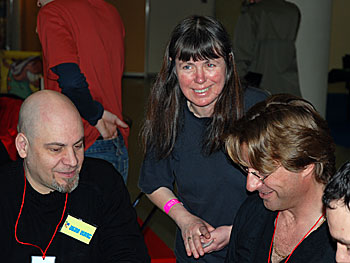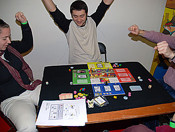 c'est Sylvie Barc (l'auteur) qui va lui expliquer le principe du jeu. On remarque sur la photo de droite que Chris écoute très attentivement .