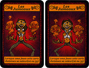 Lorsqu'un joueur joue une carte Jumeaux, il doit choisir valeur de la carte et l'annoncer aux autres joueurs. Cette valeur peut être soit 0 ou 20 (à 3 joueurs), soit 0 ou 35 (4, 5 et 6 joueurs).