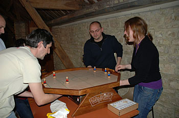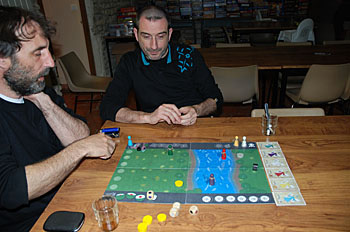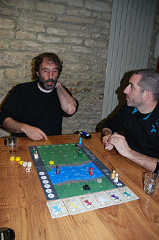 Alain qui teste TrollLand en compagnie de Bruno Cathala...