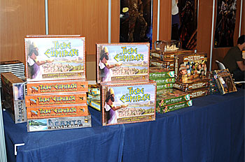 Commençons cette visite par le stand de Matagot, ou trônait fièrement la réédition de Tigre et Euphrate. On notera que la boîte est on ne peut plus compète, puisqu'elle contient les extensions "les 4 merveilles" et "La Ziggourat", la totale Tigre & Euphrate quoi !
