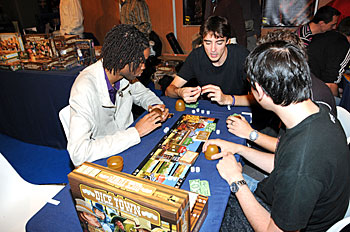 Le Monde du Jeu c'est un peu l'évènement ludique de la rentrée, avec un salon qui rassemble les diverses facettes de l'univers ludique. Derrière ses portes on pouvait découvrir du jeu vidéo, du jeu de rôle, du jeu de cartes à collectionner et bien sur du jeu de société. Et si jusqu'à présent ce dernier secteur n'était que peu représenté, cette année les éditeurs francophones s'étaient déplacés en nombre...Les "vraies" nouveautés étaient certes peu nombreuses, mais présentes tout de même sur certains stands, de plus, certains jeux et extensions prévus pour Essen étaient testables, pour certains dans leur forme définitive.