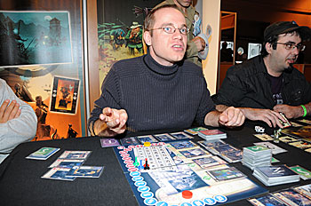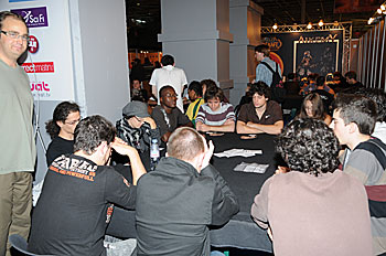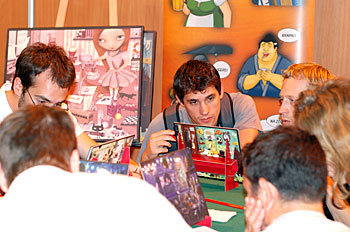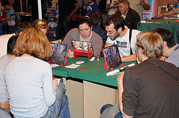 Sur le stand de Cocktail Games, un concours était organisé pour gagner des planches inédites de Kaleidos, ce qui donnait des parties où les joueurs étaient très concentrés