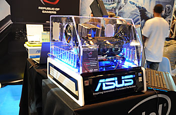 La config pour jouer selon les règles, d'après ASUS : Intel I7 920, Carte Mère P6T (Socket LGA 1366), Mémoire OCZ DDR3 Triple Chanel, deux GTX 260 en SLI, le tout alimenté par une alim OCZ 700W, un beau bébé