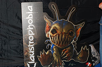 Pour Claustrophobia, le prochain jeu de figurines de Croc, ben ça se passait sous la tente et sur invitation, alors faudra se contenter de la PLV...