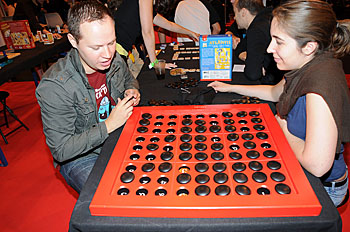 Arrivée chez Gigamic où, comme d'habitude, Mathilde passe inlassablement de table en table pour expliquer les nombreux jeux présentés...